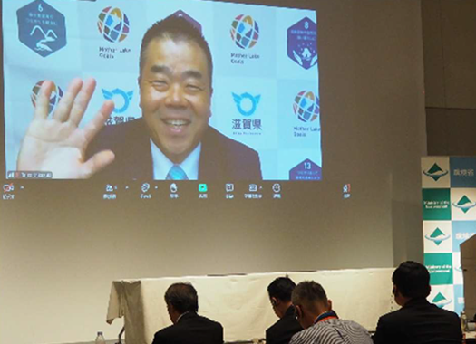 滋賀県の三日月大造知事より、環境と経済の調和に向けた連携の重要性についての講演がありました。1960年代の急激な工業化・都市化により、琵琶湖は1970年代後半に赤潮などの水質汚濁が進展したが、合成洗剤に含まれるリンが原因物質であることを突き止め、合成洗剤を使わない「石けん運動」および「琵琶湖条例」の制定により、産業と環境の両立を進めてきたことが紹介されました。気候変動等の影響により湖沼環境は変化し続けており、琵琶湖は世界の湖沼の課題を垣間みる窓として捉えることができる、そしてグローバルに共感・連携・実践を深めて、具体的な行動を起こすときであることが強調されました。また、世界と結びつきを強めていく上でアフリカ大陸は重要であることが述べられ、アフリカの発展に貢献する滋賀県の企業についての紹介がありました。