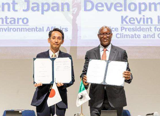 環境省とアフリカ開発銀行(AfDB)間の環境保全分野等における協力に関する覚書の署名が行われました。覚書では、環境保全や汚染防止、自然保護等の分野における両者の協力関係を構築していく意図を確認しています。具体的な協力分野として、二国間クレジット制度(JCM)を含めた気候変動対策の取組、適応・ロス&ダメージ分野、廃棄物管理による公衆衛生の改善について、今後連携を深めていく方針が確認されました。環境省 土居健太郎 地球環境審議官からは、日本が引き続きアフリカから信頼されるパートナーとして、日本企業の力も結集しながら、気候変動と他の課題を同時に解決するシナジー型のアプローチを通じて、持続可能な発展に貢献していくことが表明されました。
