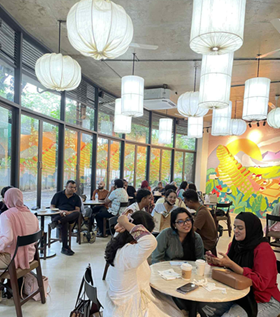 ダッカ市内のカフェに集う人々 |