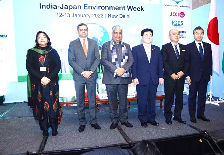 | Overview | The India-Japan Environment Week took place in New Delhi, India including thematic seminars, business matching and environmental technology exhibition. The conference enjoyed the participation of H.E. Mr. Akihiro NISHIMURA, Minister of the Environment, Japan, and H.E. Mr. Bhupender YADAV, Minister for Environment, Forest and Climate Change, India. The event counted 500 on-site participants and including online attendees, the total reached 700. Lively communication took place in the exhibition area, and the event concluded successfully amid great enthusiasm. |