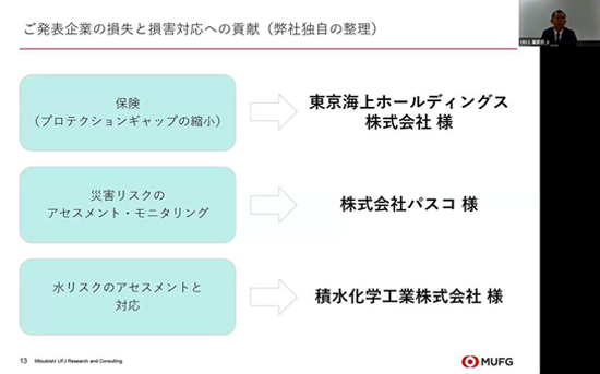 損失と損害に関係する事業を実施している民間企業より、取組が紹介されました。