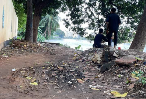 ダッカ中心部、高級住宅地エリアの裏通り。 |