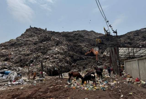 今にも崩れそうな、野積みされたゴミ山 |