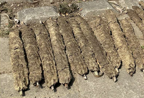 天日干し中の牛糞燃料 |
